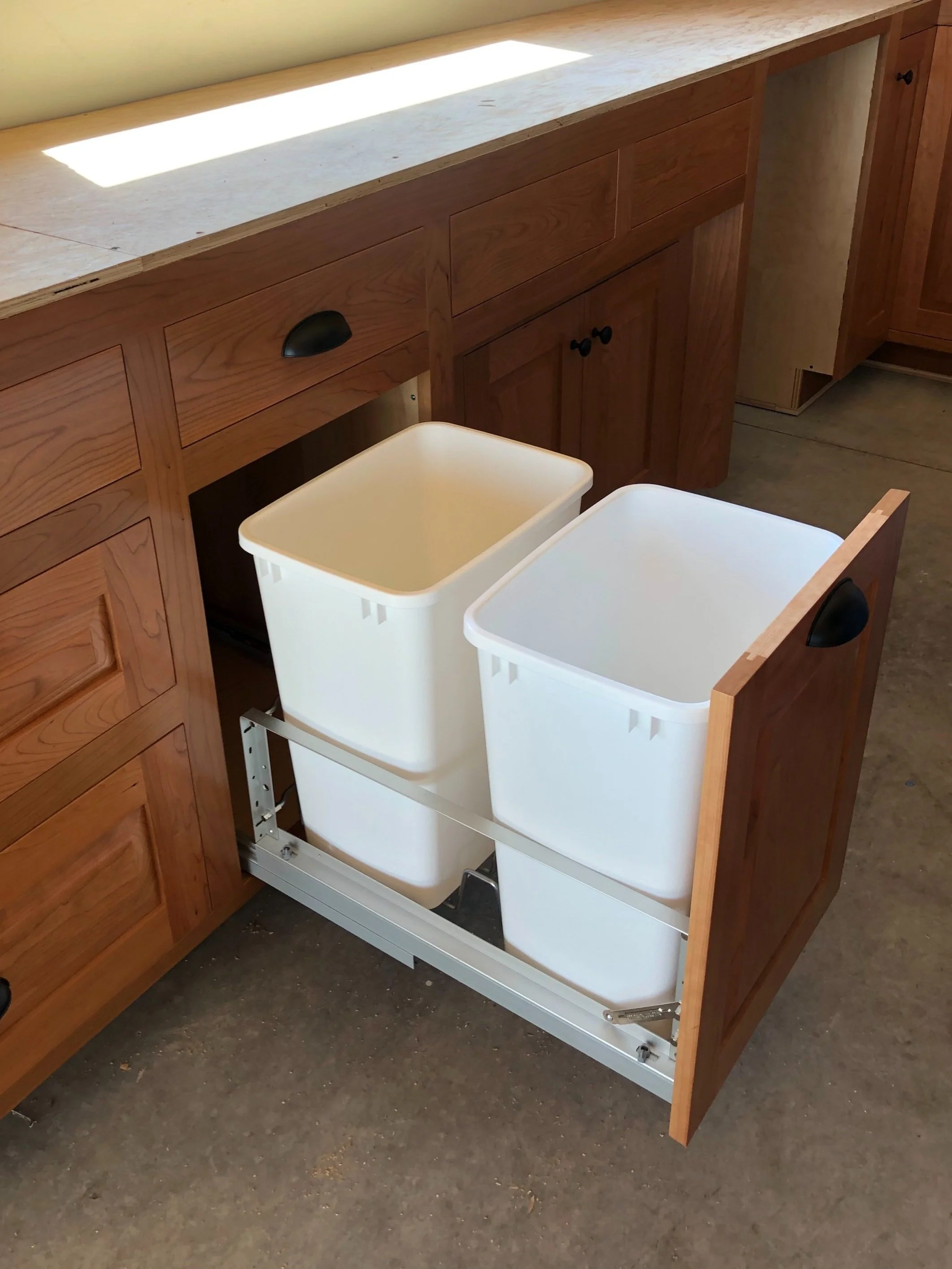 Hardware- Our standard cabinet doors are hinged on soft-close euro style hinges, and drawers are mounted on soft-close side mount glides. These hinges are great for adjustability and can be replaced with very little effort. Side mount glides are strong and reliable, and get smoother and quieter with weight and time. Under mount drawer slides are also an option if preferred.