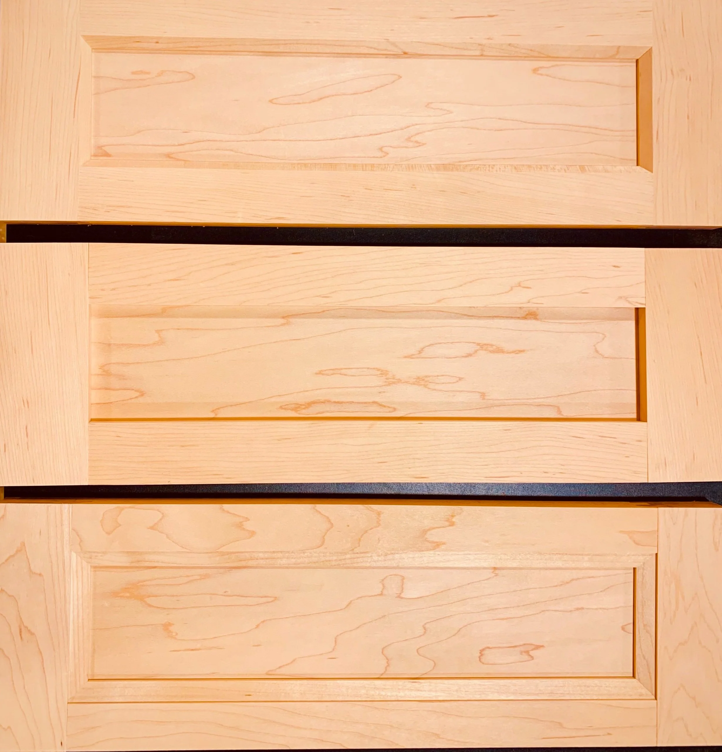 All our cabinets are finished with multiple protective coats of lacquer providing a beautifully smooth feel and lasting durability. There are three finishes with different price points. These are painted, stained, or clear finishes.